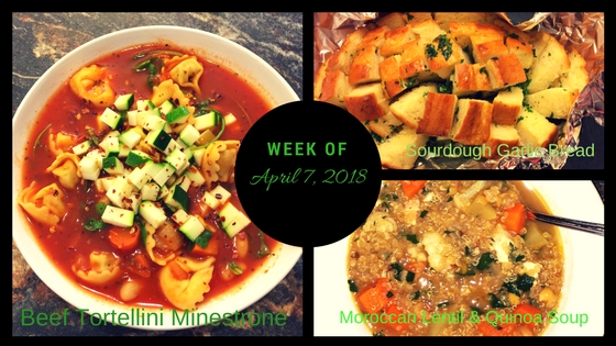 I’m getting my mobility back, so this week’s plan includes recipes that can be prepped quickly, and then left alone while they cook.  My oldest son has been enlisted to start cooking a meal a week for the family, so he will be following the recipe of the week for that night’s dinner.  This week it will be Thursday’s Beef Tortellini Minestrone with Garlic Bread and will be posted Monday morning. Continue reading
